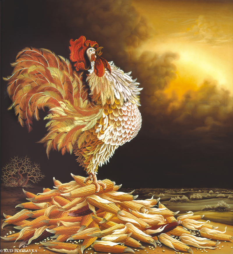 …. Pevec, pun života, kukuruz, simbol bogatstva jeseni, tama, koja nas okružuje… svjetlost, budućnost svjetlo nade…….