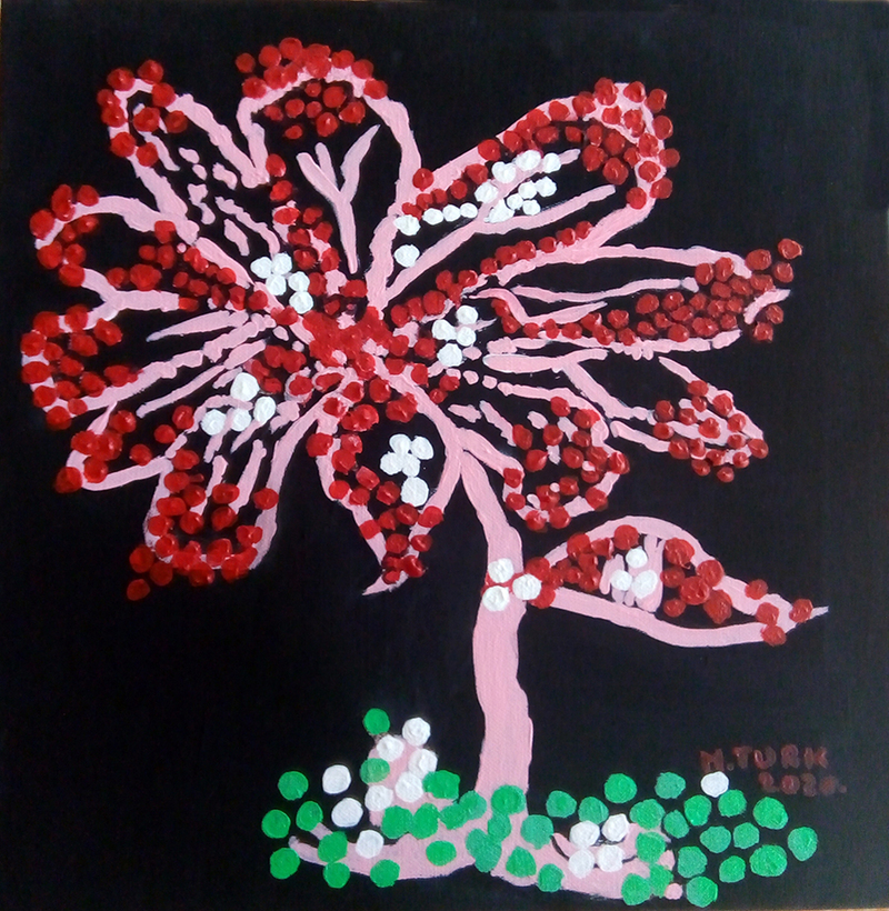 Kako me cvijeće uvijek usrećuje, mirisom ljepotom i nježnošću, moje viđenje jednog takvog cvijeta, sa žarkim bojama upravo krasi moju sliku.